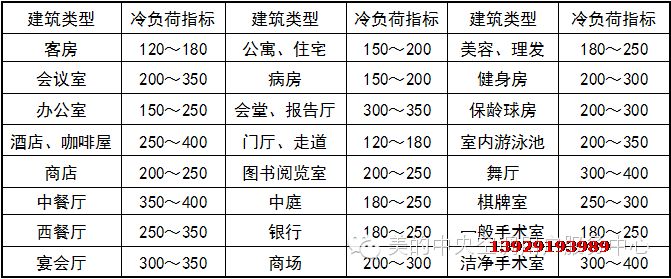 ※當出現上述情況或者其它一些惡劣條件時,估算單位負荷指標增加10%~15%;單位麵積冷負荷一般為熱負荷的120%~150%,所以一般以冷負荷為主。
