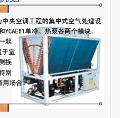 產品介紹:約克風冷模塊就是約克YHAC風冷冷水機組,產品性能卓越!穩定性好!這個用過才知道。支持熱回收、製熱。是小型的YCAE產品0