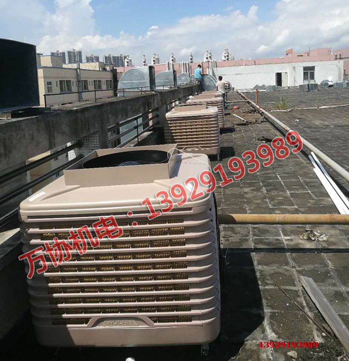 該項目共選用14台澳藍蒸發式冷氣機及4台移動式空調機組,車間全麵降溫,冷氣機安裝於屋頂,內接送風管,冷卻效果理想。