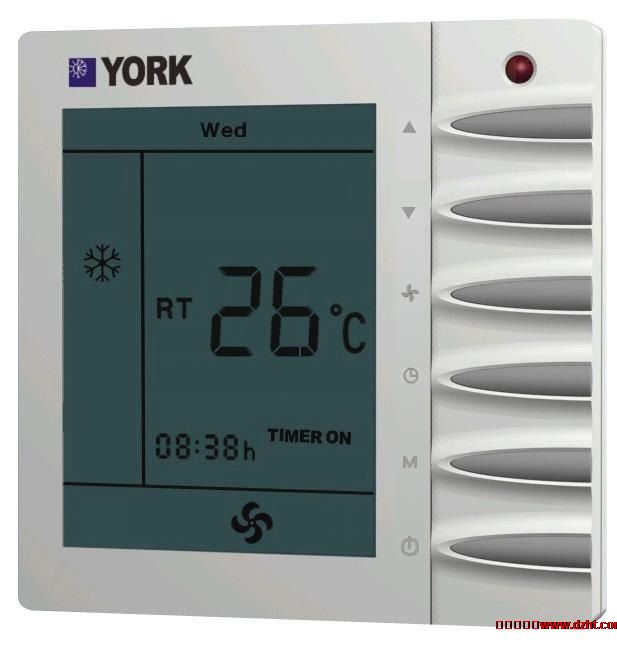產品介紹:江森約克Y107溫控器用於單獨控製暖通空調係統中的室內溫度,用戶可以選擇開關及三種不同的風機轉速,從而控製末端裝置的出口風速。