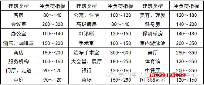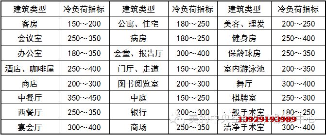 ※當出現上述情況或者其它一些惡劣條件時,估算單位負荷指標增加10%~15%;單位麵積冷負荷一般為熱負荷的120%~150%,所以一般以冷負荷為主。