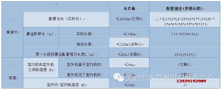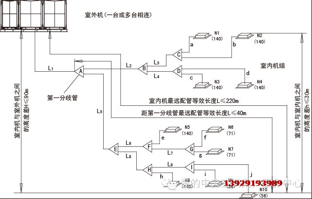 冷媒配管長度和落差(MDV-X全直流變頻多聯機為示例)