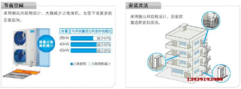 在大戶型公寓、別墅、店鋪、餐廳或中小型辦公場所,常因安裝環境的限製,導致常規直流變頻中央空調室外機布置困難,鑒於此,美的特別推出20KW~45KW側出風係列,盡為用戶節省空間,在安裝、維護等方麵提供更多的便利性,同時采用各種先進的技術,為您提供舒適高雅的空調環境。