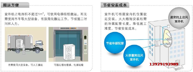 室外機占地麵積不超過1平方米,可使用電梯輕鬆搬運