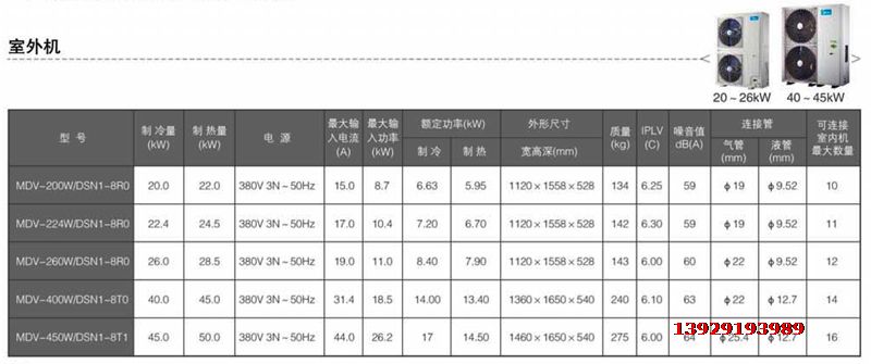 直流變頻智能多聯中央空調側出風室外機係列參數