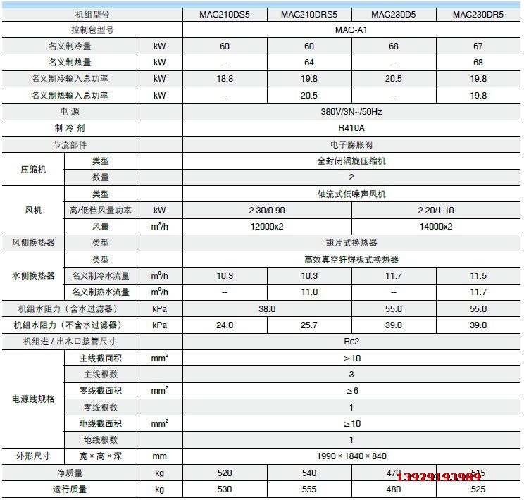 麥克維爾模塊式風冷冷水(熱泵)有如下機組: